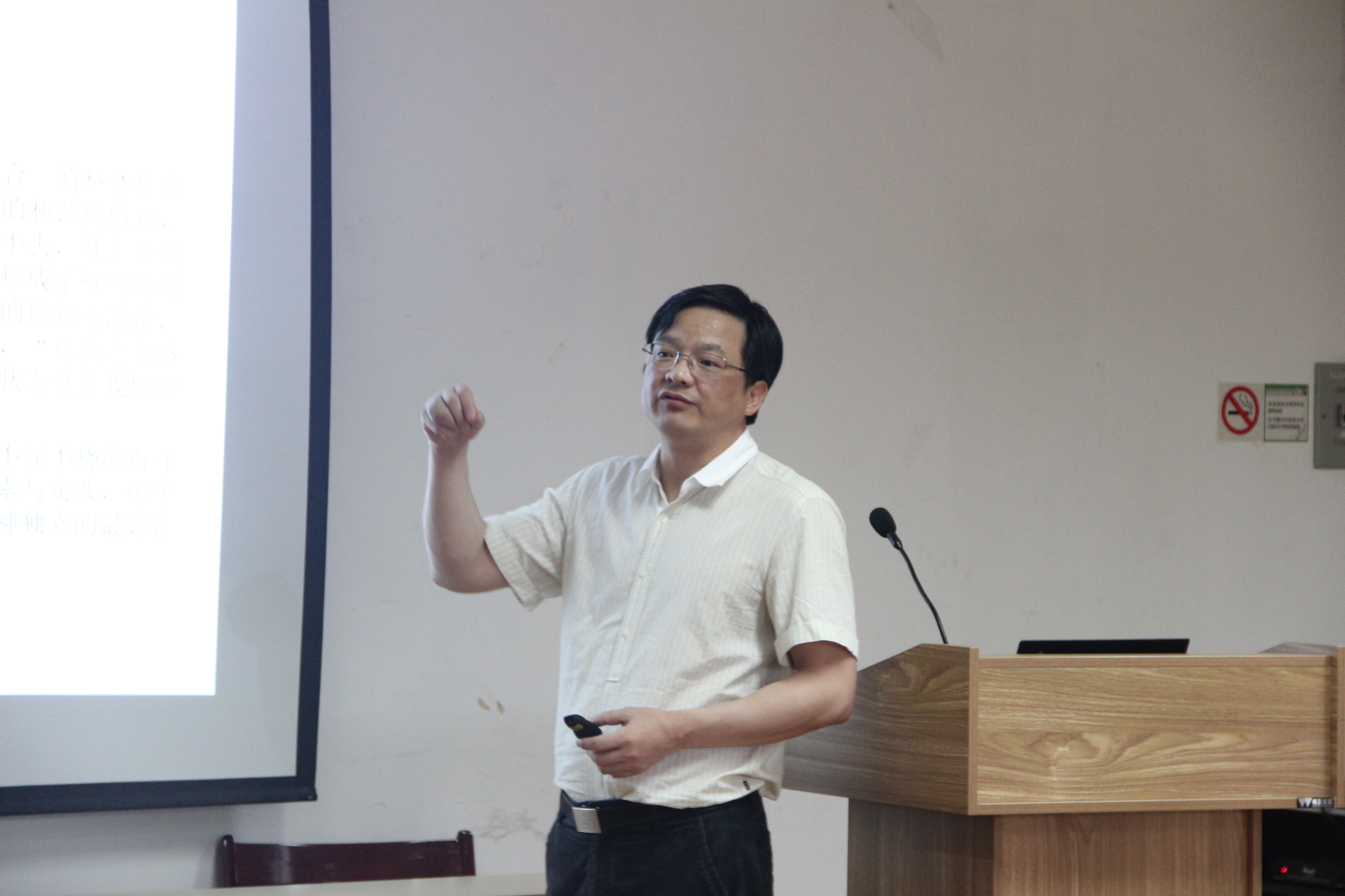随后,胡书记从“弘扬中国精神共筑中国梦想”这一主题出发探讨中国精神和中华民族的共同梦想。他指出,实现中华民族伟大复兴是中华儿女的整体利益和共同期盼,而中华民族伟大复兴正在呼唤中国精神。中国精神,是国家和民族的凝结剂和推进器,是超越自我、走向辉煌的精神力量。高校教师在深刻把握高等教育事业所处的时代方位和肩负的历史使命的同时,应当坚守人文关怀和独立自由,让大学精神与时代精神、民族精神互相激荡。以“国家富强、民族振兴、人民幸福”为基本内涵的中国梦,既是团结激励各族人民的强大动力,来推动国家的经济社会发展,也更有助于外部世界了解中国。