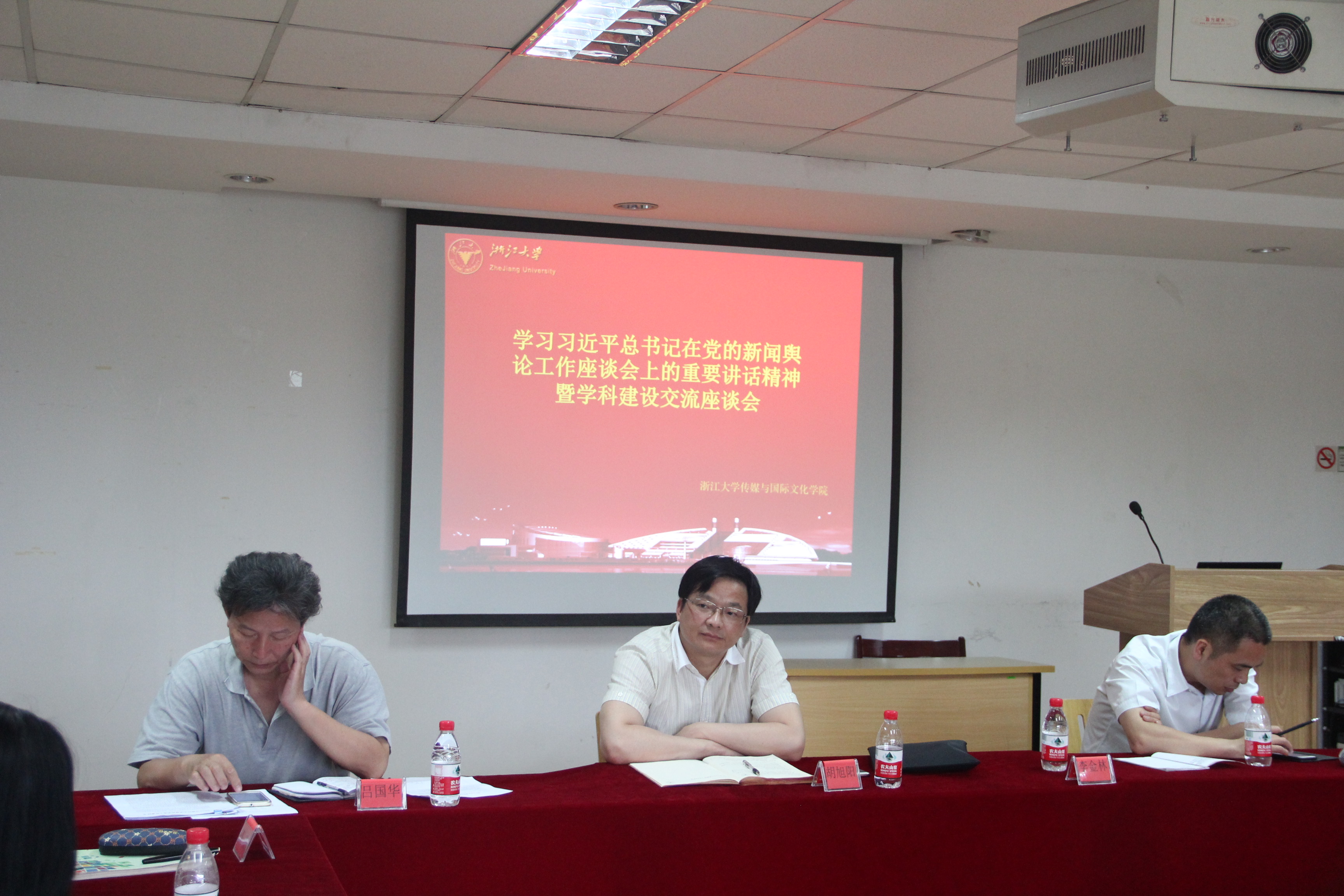 最后,胡书记结合传媒学院实际情况,提出了下阶段工作的要求。一是抓立德树人,切实加强人才培养。深入推进与省委宣传部共建办学,进一步加强马克思主义新闻观教育,推动实施特聘教授制度,全面推进“先锋学子”全员培训计划。二是抓正面宣传为主,提高新闻宣传质量和水平。坚持正确的舆论导向,大力弘扬社会主义核心价值观、校训、浙大人共同价值观及浙大精神。三是抓严格管理,牢牢把握主导权主动权。具体来讲就是管好课堂、报告会、研讨会、讲座、论坛、网络和队伍。四是抓师德建设,做好教师思想政治工作。五是抓党委领导,推动意识形态工作层层深入。