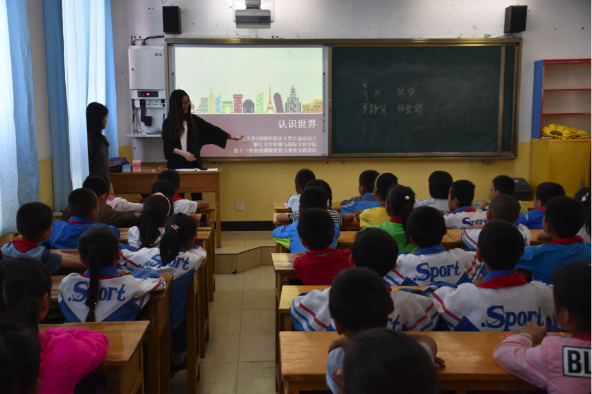 随着上课音乐的响起,大家伙儿正式进入了状态。我们向孩子们说明了此次活动的名称和主题:浙江大学120周年校庆大型公益活动之威廉希尔(WilliamHill-中文官方网站)“一带一路 创课圆梦”赴十一省份主题实践活动。屏幕上放映的是一幅中国地图,亓力老师将青海省与浙江省之间用线段连了起来,并且向孩子们说明我们坐了33个小时的火车才到达民和县——中国真的很辽阔。