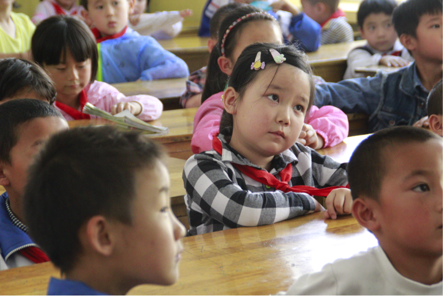 2016年7月1日早晨,天空是一言以贯之的蓝,差不多就在孩子们排着队伍走出教室、去往操场的一瞬间,我们一行人便溜进了民和县川垣学校三年二班的教室,本想给二十分钟后归来的他们一个惊喜,万万没想到教室里面还留着几个打扫卫生的孩子。对于大哥哥、大姐姐们的到临,他们似乎已经有所耳闻,至少已经为我们打开了电子白板,不过那种初见时刻所显现出来的调皮与羞涩,却是万分真切。其中一个女孩子后来被我们了解到是这个班级的班长,只见她穿着黄色的长袖外套,配上甜甜的笑脸,青涩但耀眼。她一面回答我们提出的各种奇形怪状的问题,一面指挥两个拿着扫把的小男孩清理地板。