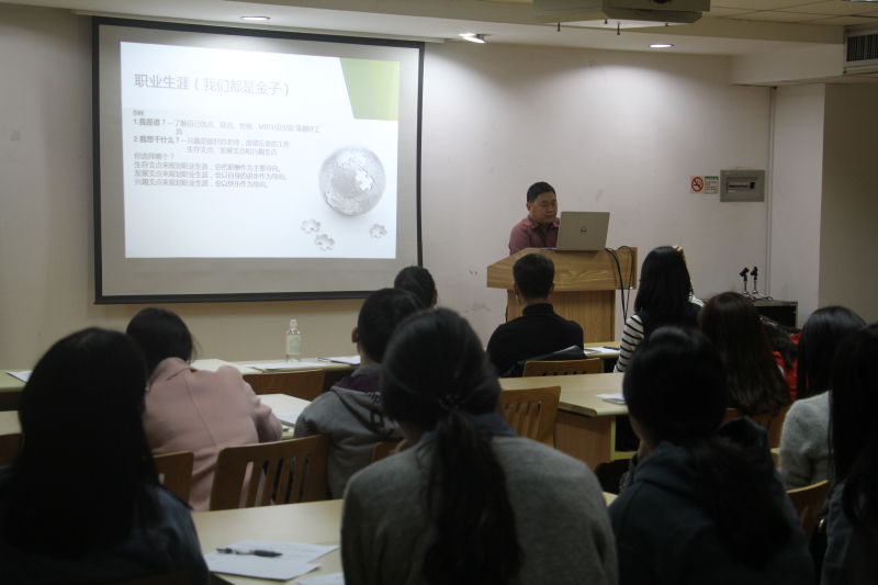 “你是否正在求职或将要求职,却没有清晰而精准的求职目标?”、“你不喜欢当下在座的工作,对工作提不起劲来?”、“你每天忙碌,但成果有限?”讲座之初,周家伟先生抛出的这些问题,一下子引起同学们的共鸣。而在迷茫的求职期,最需要做的是什么?周家伟先生向同学们推荐了5W思考模式,从“我是谁”、“我想干什么”、“我能干什么”、“环境支持或允许我干什么”、“自己最终的职业目标是什么”思考自己自己的职业生涯。他建议同学们在了解自身优缺点的基础上,清楚分析自己找工作是基于生存支点、发展支点、兴趣支点,评估薪酬、自身进步、自我愉悦等各维度,找到最适合自己的职业导向。