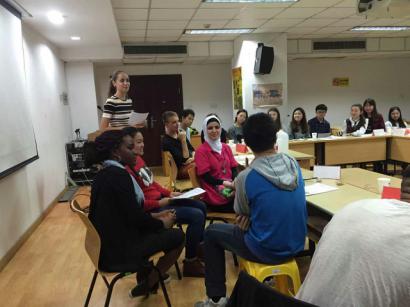 第二个问题,讨论学历与找工作以及收入高低是否有必然联系?就“学历”与“能力”的关系请大家畅所欲言。约旦同学康丽所在的小组认为,不同的工作对于学历与能力的要求各有侧重。而且康丽提到,在约旦读博士读研究生有高学历的基本是女性,这一点非常有意思。大部分同学认为能力不等于学历,要注意能力的培养,可见这是世界不同国家人民的共识。