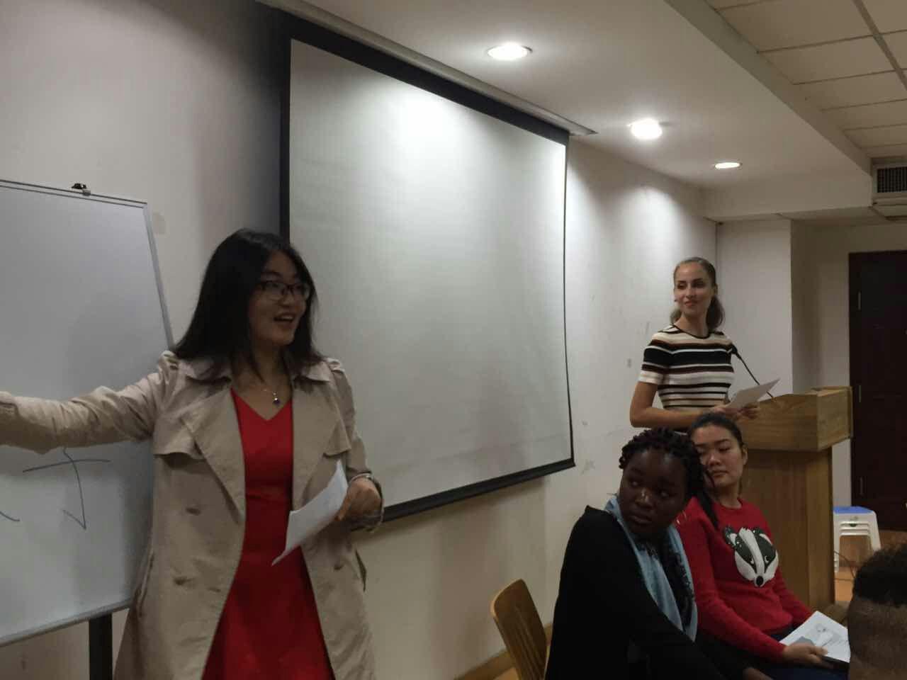 2016年10月26日在浙大西溪校区教学主楼426,浙大汉语角高级版如期举行。尽管当晚大雨滂沱,很多同学还是冒雨从各校区赶来参加。由于高级版汉语角参与人数越来越多,从本期开始我们将汉语角高级版移至教学主楼426教室开展,给大家提供更宽敞与方便的交流场所。本次高级版汉语角的讨论话题是“各国青年看‘学历’与‘能力’”,主持人由2016级汉语国际教育专业俄罗斯留学生喀秋莎与中国学生韩靖超共同担任。这期话题的讨论格外热烈,掀起一个又一个高潮,一直到近九点,大家才意犹未尽地离开。