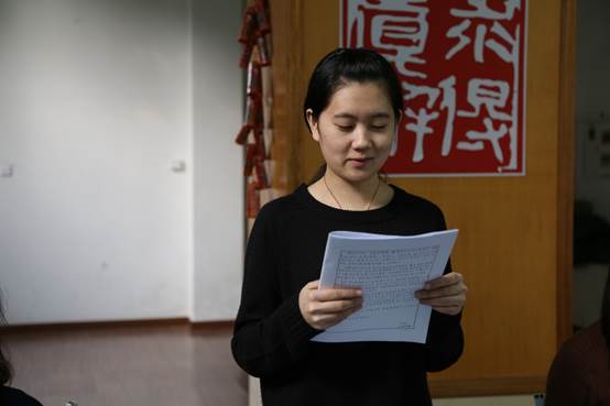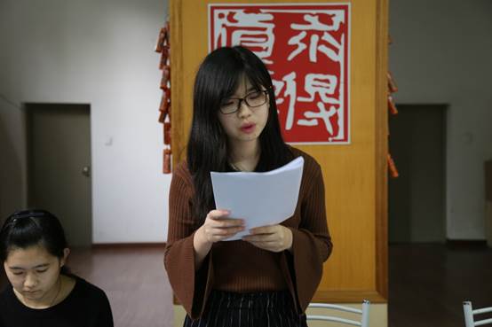 最后一位申请人何慧秀朗读入党志愿书中由本人填写的内容,介绍了本人专业素质过硬,负责和参与拍摄的视频多次获得市级、校级比赛各类奖项。同时,表明了为人民服务的热情和加入中国共产党的决心。介绍人张璐补充到,何慧秀作为班级团支书非常认真负责,热心、耐心地帮助每一位同学,群众基础良好。此外,由于何慧秀专业素养扎实,在群众具有很强的公信力。介绍人周梦竹高度赞扬了何慧秀入党的积极性和热情,她曾作为本党支部的唯一代表赴井冈山参加学习交流活动。郑志远同志还介绍了何慧秀在学习方面勤奋刻苦的事迹。介绍完毕后,全体党员表决全票通过其发展申请。