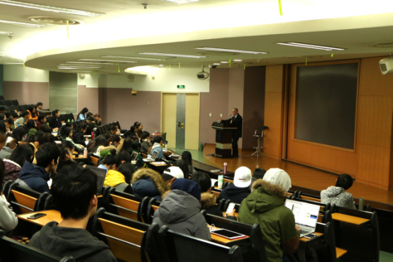 讲座邀请了现任雅虎财经总编苏安迪(Andy Serwer)先生做了生动的分享。雅虎财经是当今最大的财经新闻媒体,苏安迪先生也在该领域内有着丰富的从业经验。在加入雅虎财经之前,他不仅在时代杂志集团工作了29年,还于2006-2014年担任了“财富杂志”主编,成为了该杂志历史上4位任期最长的总编之一。