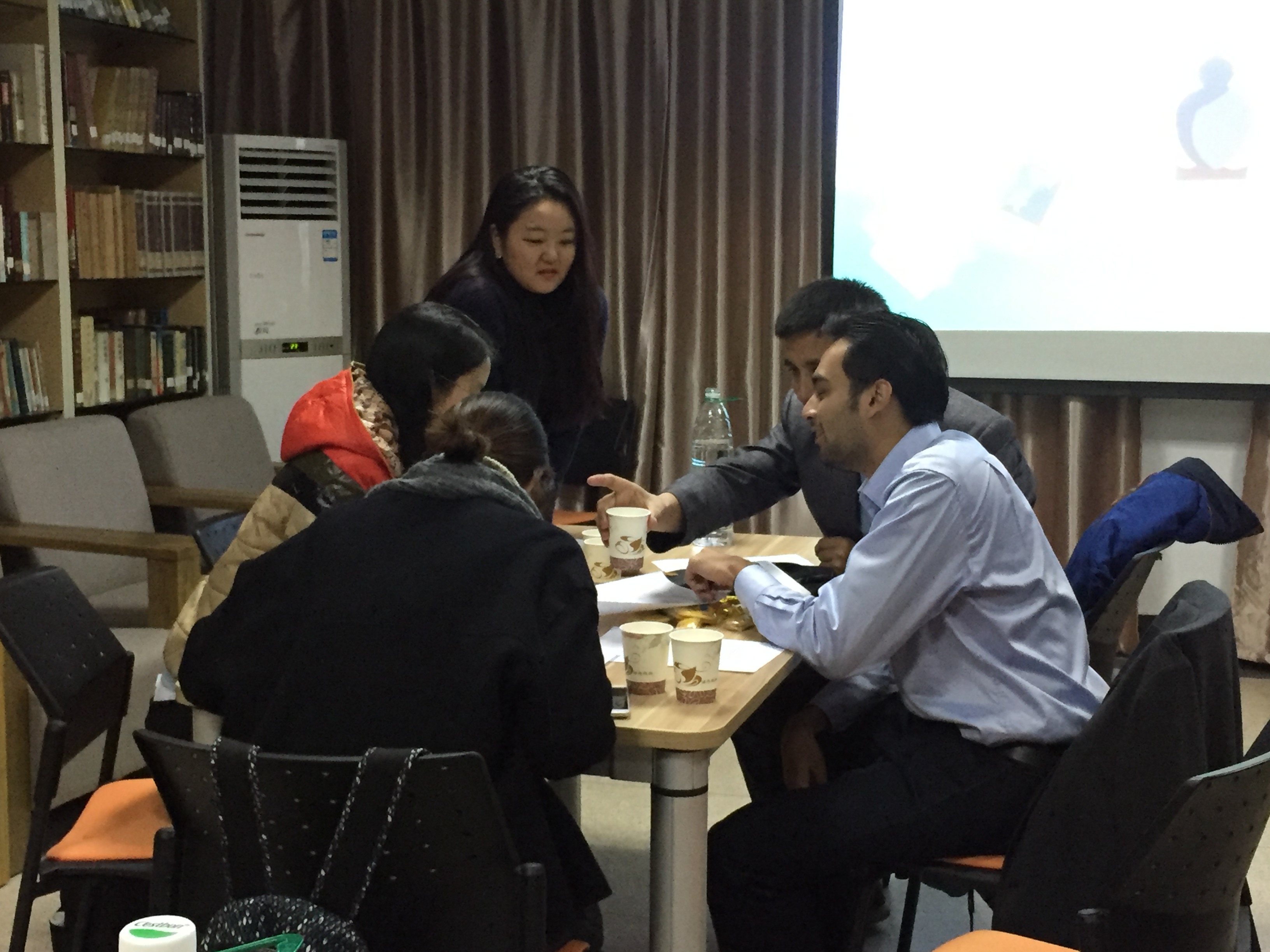 活动一开始,主持人询问大家是否在中国看过病,并问大家觉得在中国看病难不难。来自伊朗的朋友表示自己会从伊朗带一些草药来中国,像感冒这种不严重的病就可以自己医治了;还有的朋友表示在中国去看医生都是用表演的方法,因为对于看病的词汇还不是那么了解。由此,主持人先带大家学习了如何挂号,并举例说明那些常去的科室,接着让同学们练习了该如何挂号。接下来,主持人与大家共同学习了常见疾病的说法,比如头疼、发烧、咳嗽,嗓子疼等等,并且表演了一个猜谜游戏,由两个人组成一队,一位表演自己哪里痛,再让另一位猜,并且根据游戏完成对话。