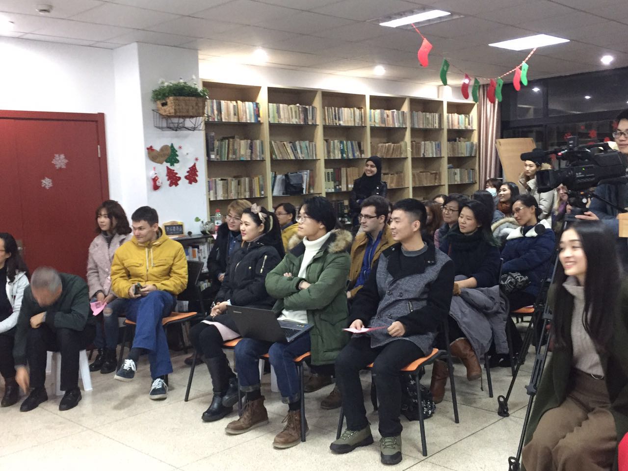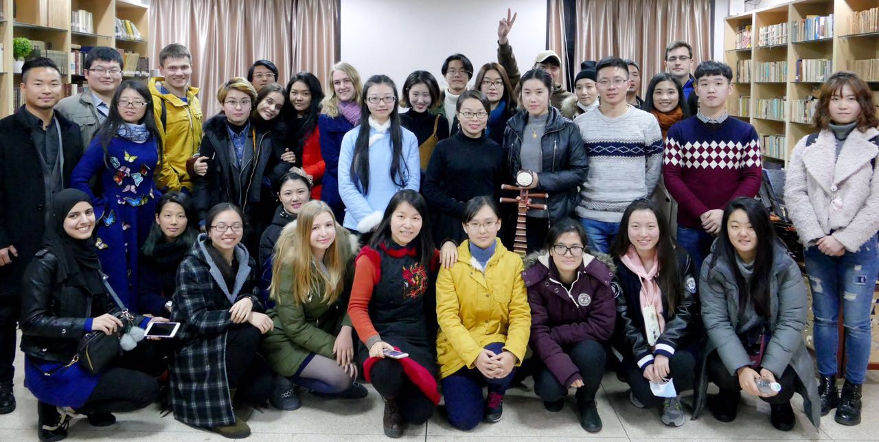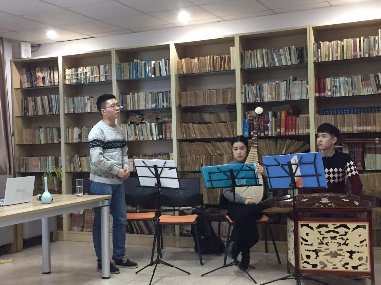 2016年12月17日,在浙江大学西溪校区教学主楼411鸽子屋咖啡吧举行了一场别开生面的昆曲经典名段清赏会,这是跨文化训练本学期最为重要的一场艺术展示,由浙大传媒学院国际文化学系和昆曲艺术团体“工尺记”合作,共同举办。本次清赏会意在以昆曲品赏、演唱为主,以演奏昆曲经典唱腔曲牌与吹打曲牌音乐为辅,按照“品赏、展示、互动、体验”思路,立体化、全景式分享古典昆曲的大雅之美。主讲人是世界遗产保护杭州研究中心助理研究员、“工尺记”创始人施剑博士,除了施剑博士司笛外,还有琵琶、扬琴和古琴的乐手也参与此次演奏,并且安排了一位曲社的朋友进行了演唱和表演。张丽萍老师主持并参与了这次活动。传媒学院汉语国际教育2016级专业硕士班同学以及部分其他专业同学参加了这次活动。