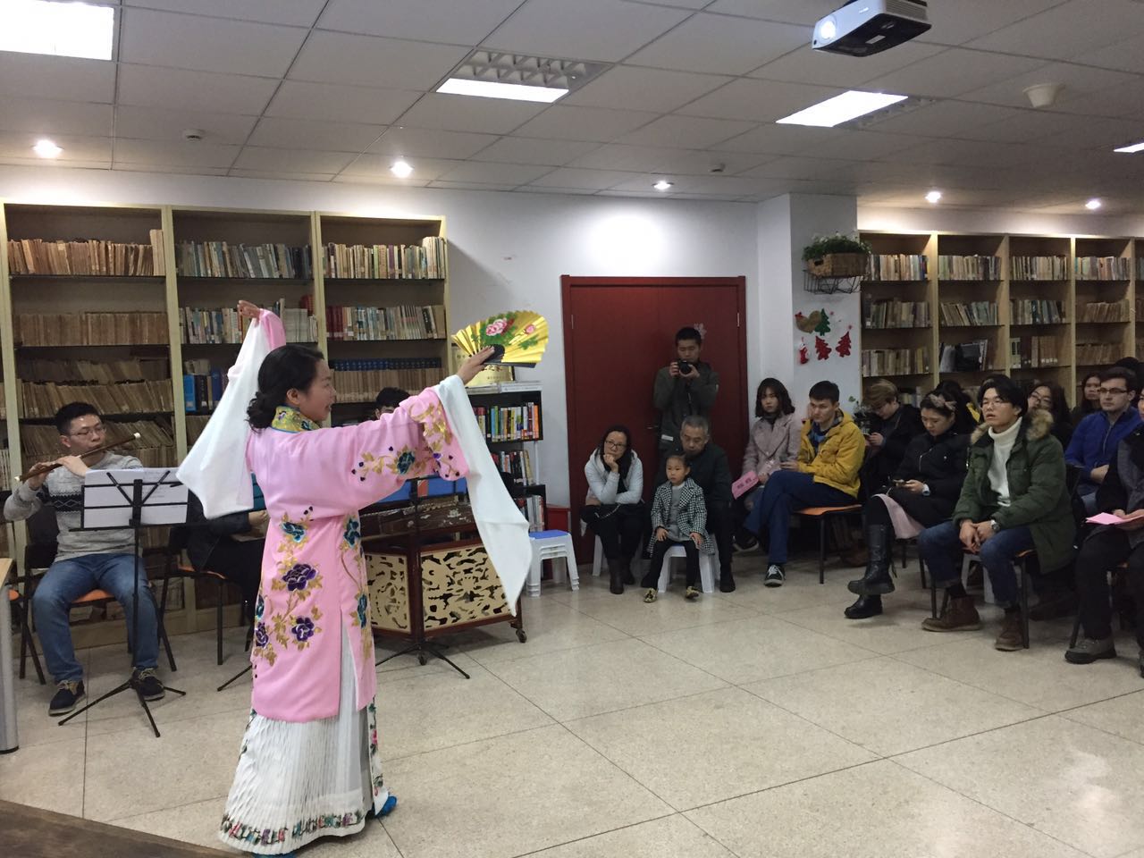 开场是由施剑博士带领的“工尺记”乐队为大家演奏由昆曲曲牌音乐改编的序曲,用箫、琵琶和扬琴让大家初步领略到了中国古典乐器的魅力。接着施剑博士为大家讲解了作为“百戏始祖”的昆曲的由来——将南曲伴奏所用的箫、笛等管乐器与北曲伴奏所用的琵琶等弦乐器完美地结合在一起,使昆曲唱到情思细腻之处可温婉,需要表现激烈情绪时也可高昂。接着施剑博士声情并茂地介绍了昆曲名作——《牡丹亭》的大致内容,并摘取其中最具代表性的缘起、脱尘两个部分,由“工尺记”伴奏,曲社的莲花老师演唱和表演,将这部经典之作中的四节——《牡丹亭·惊梦》之[步步娇]、《牡丹亭·惊梦》之[皂罗袍]、《牡丹亭·寻梦》之[懒画眉]、《牡丹亭·幽媾》之[宜春令],一一呈现在大家眼前。