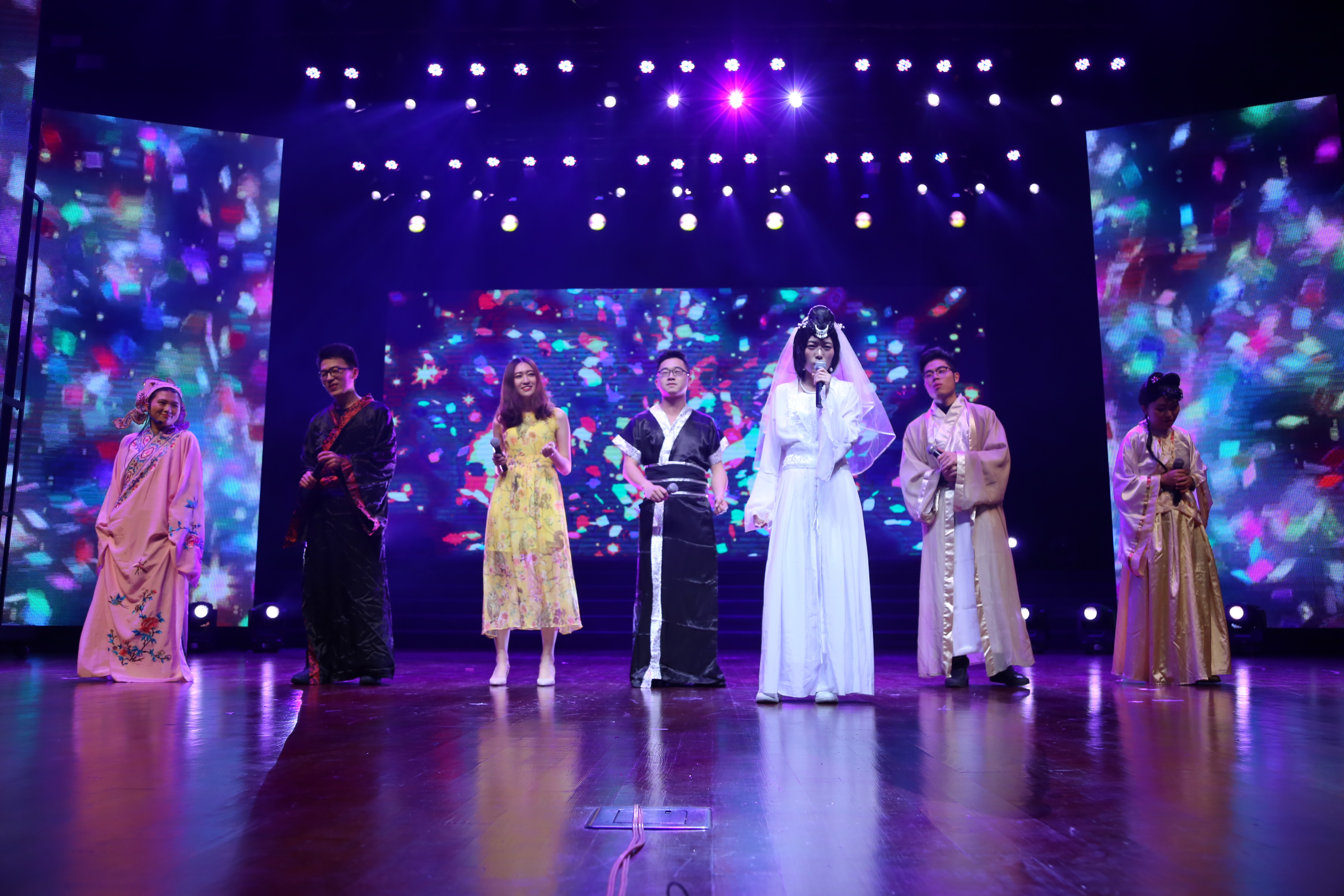 白驹寻梦,创意十足。16级汉教硕士班的同学们与留学生同学们用六种语言演唱《告白气球》,舞台上气球与歌声同舞,温暖动人; 灯光暗下,音乐响起,光影和肢体的完美配合,黑暗中却显得别样的绚丽,传媒1604班的大一新生也毫不逊色; 由16级新闻所带来的五人情景喜剧“喜剧公司”,用幽默调侃再现实习经历,让现场时时爆发出阵阵笑声;