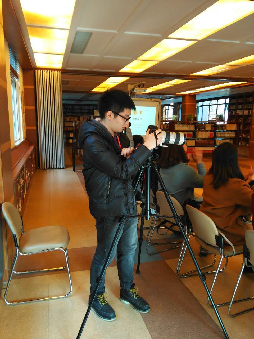 图为研究生广电所党支部仇璜在进行拍摄