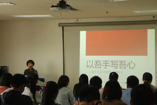 而后,浙江大学威廉希尔(WilliamHill-中文官方网站)党委副书记王玲玲老师做了自我介绍,开始了以“吾手写吾心”为主题的写作指导课程。王老师从教室内的事物入手,墙上的装饰画是某门课程学生的艺术照,通过解析这些艺术画对展现人物特点的作用进而引出了“这是一种什么能力”的问题,并指出吾手写吾心是一种表达、感知与思考、关照自我和内心、陪伴自己和批判的能力。