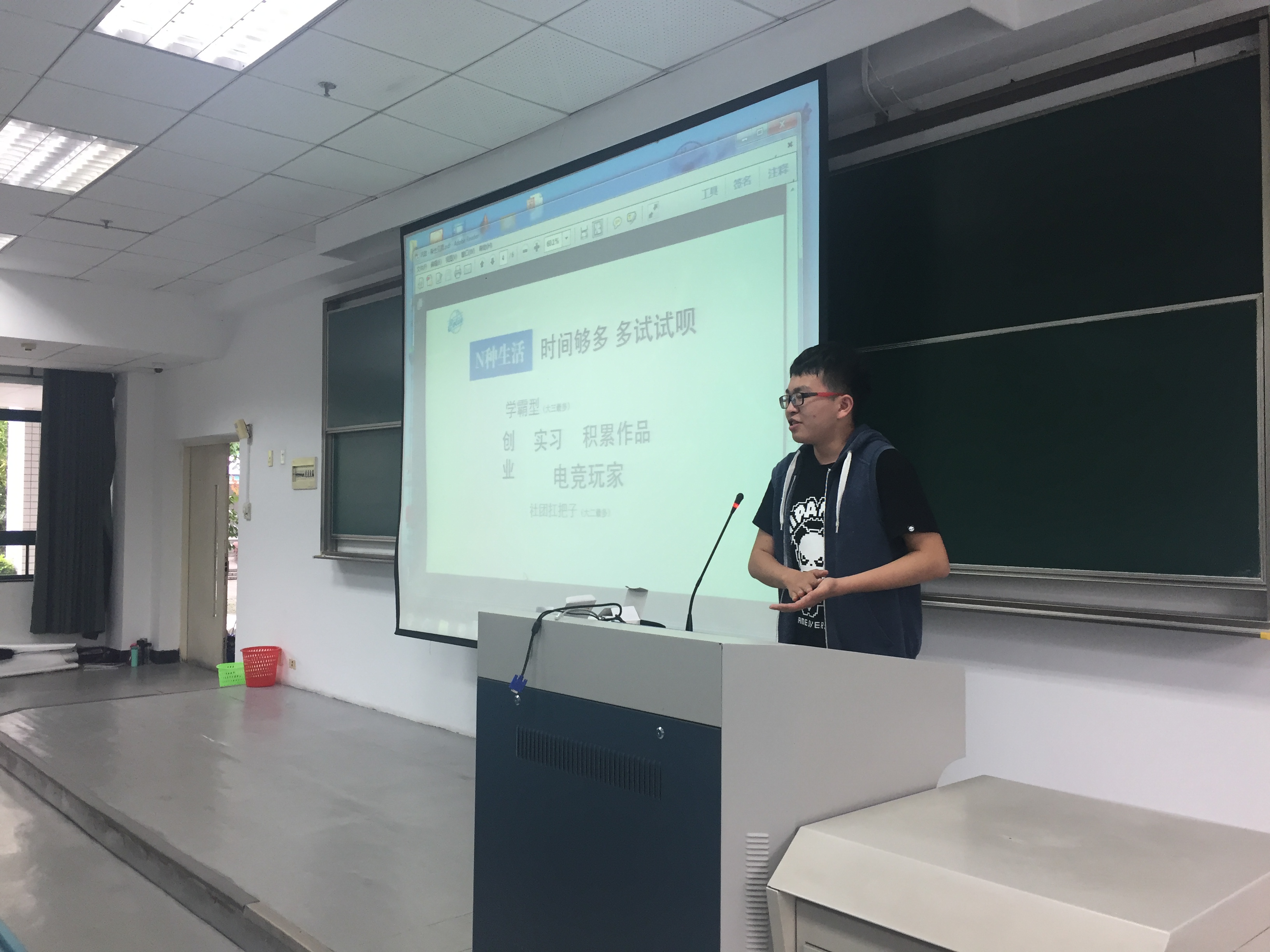 接下来,优秀学长巩晗、林琰旻分享了自己的大学四年的经验。巩晗学长说,在大学生涯中,也许会面对选专业、选实习、选毕业走向等很多选择,只要有时间,就多试试,把握好学院的各种机会,锻炼自己。林琰旻学姐则通过自己大学四年的学生工作和专业实践经验,告诉学弟学妹们专注做事最重要,个人成长最关键。