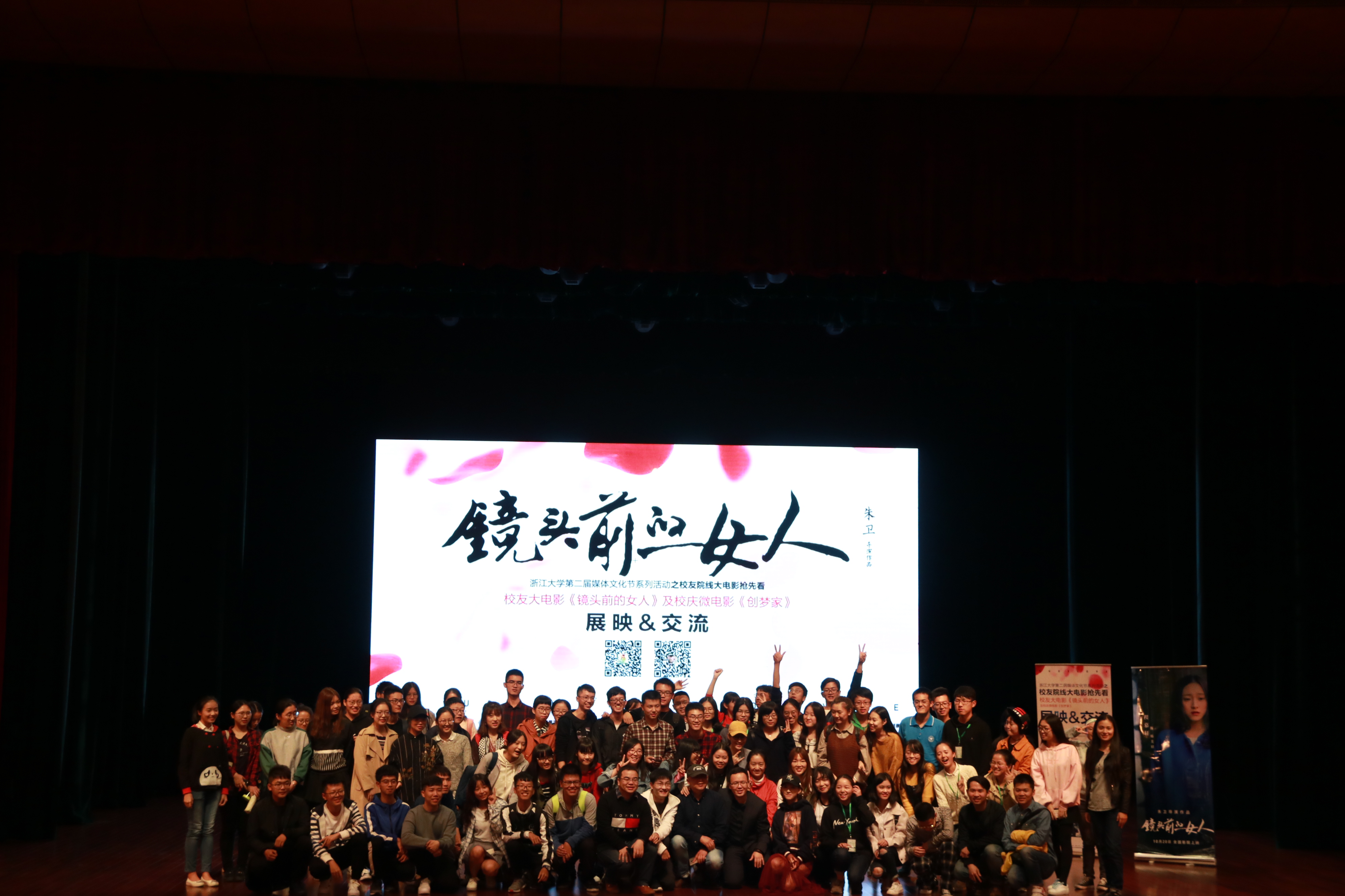 10月14日18:30,在浙江大学紫金港小剧场,由团委、电视台、电影协会的学生组织了一场院线电影《镜头前的女人》的展映交流会。这部导演、作曲完全由浙大校友创作的电影用极少的资本呈现出了极强的艺术效果,还未播出就已经在校友中引起了广泛的影响。据悉,该片将于10月20日在电影院公映。