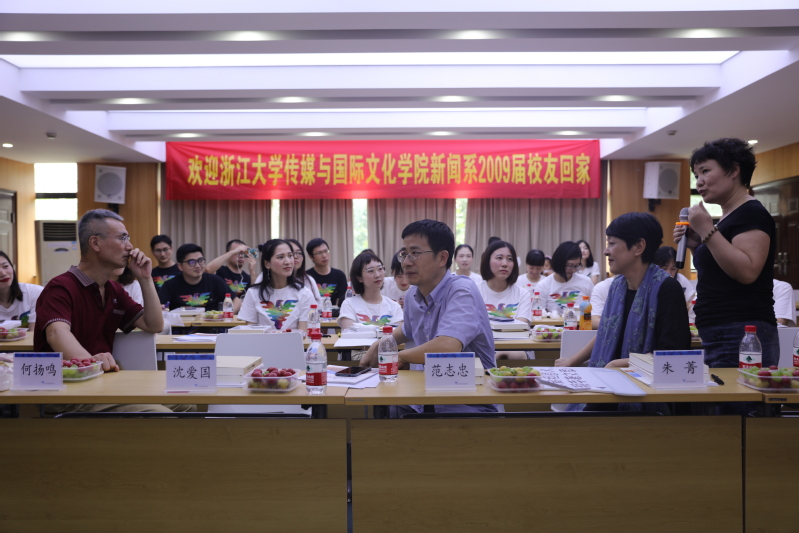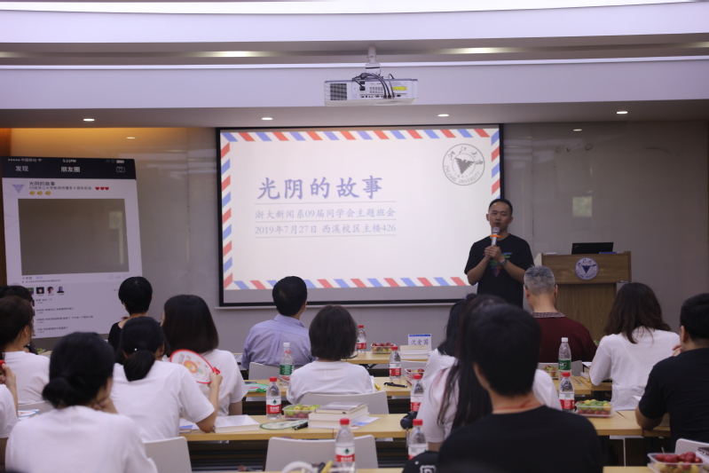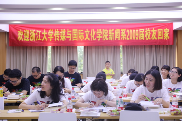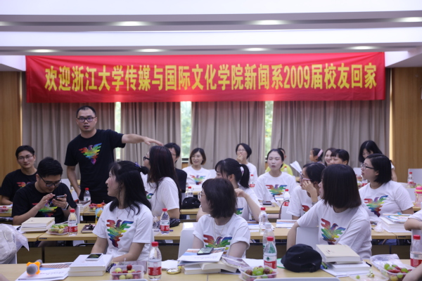 7月27日,浙江大学威廉希尔(WilliamHill-中文官方网站)新闻系09届校友们相聚浙大校园,共赴一场十年之约。上午校友们约定在紫金港校区集合,一起游览紫金港校区。临近中午,同学们结伴来到西溪校区,换上印有学校Logo的文化衫,翻出当年的毕业合影,在教学主楼426会议室重温课堂记忆。
