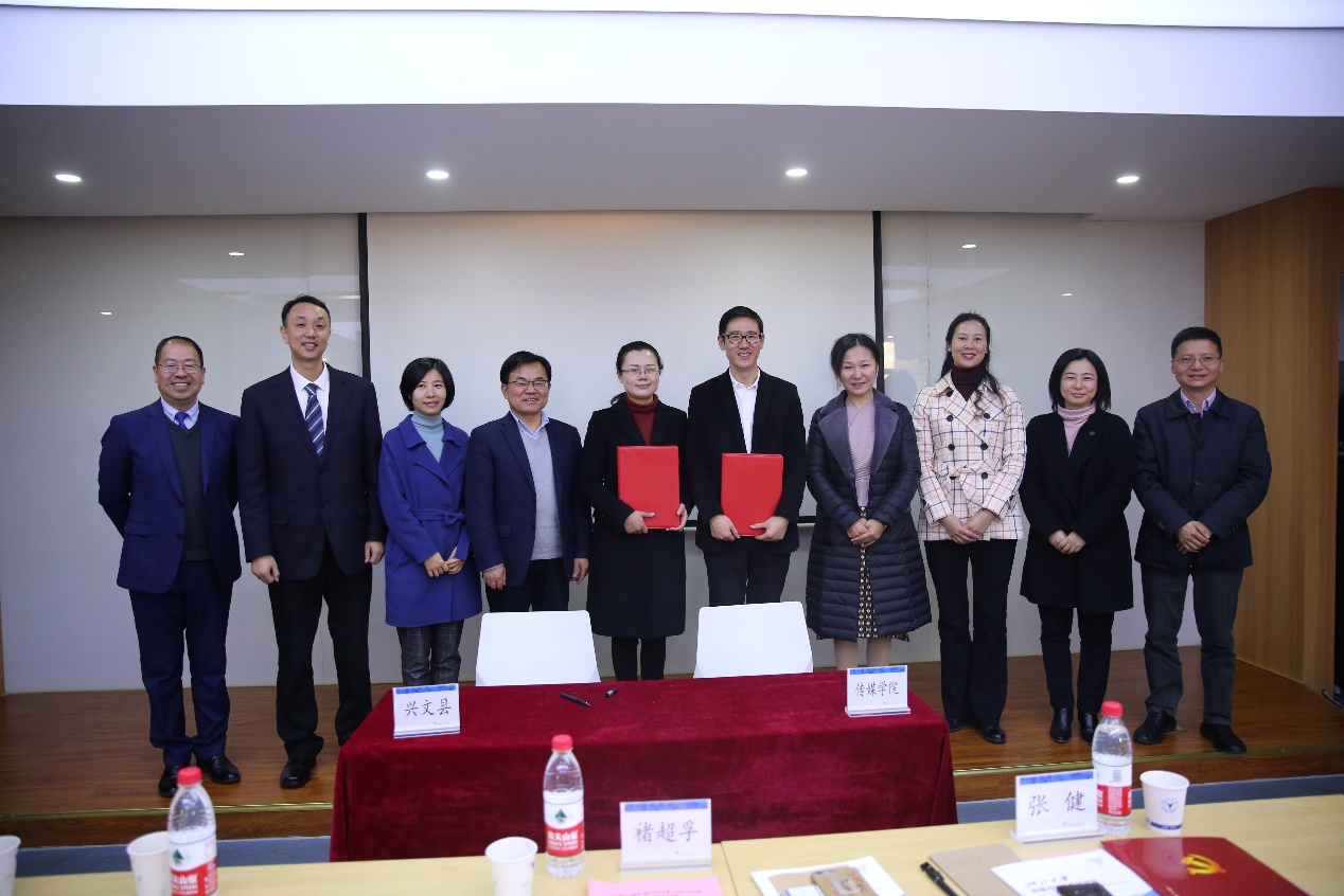 11月19日上午,“兴文县——浙江大学威廉希尔(WilliamHill-中文官方网站)”校地合作签约仪式在西溪校区教学主楼426举行,双方签署了教产学研全面战略合作协议。校社会科学研究院常务副院长褚超孚、校国内合作办公室副主任章丽萍、威廉希尔(WilliamHill-中文官方网站)院长韦路、党委书记王庆文,四川省宜宾市组织部副部长、市人才工作局局长何春琳、兴文县县委书记张健、宜宾市大学城科创城建设服务局副局长张艳丽,县委常委、组织部部长刘建,县政府党组成员董晓莉等出席签约仪式。