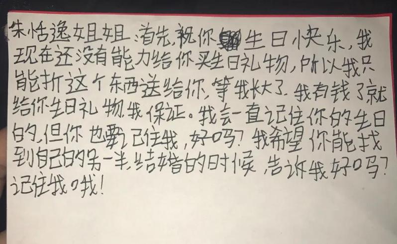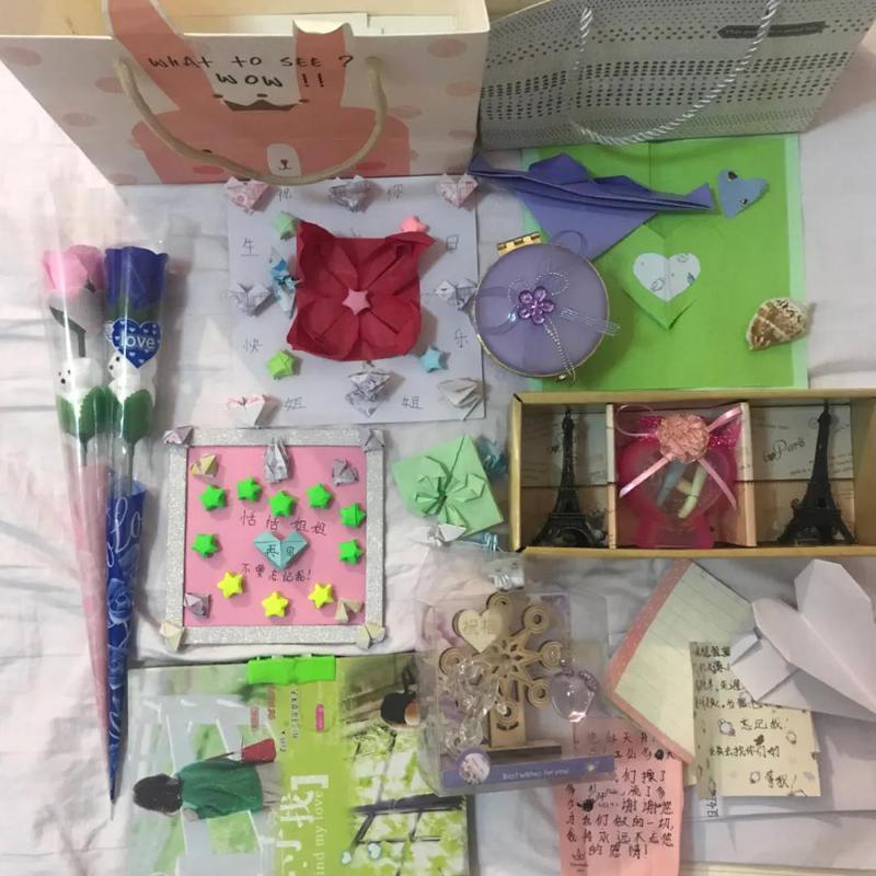 图:朱恬逸在支教时收到的生日贺卡和礼物