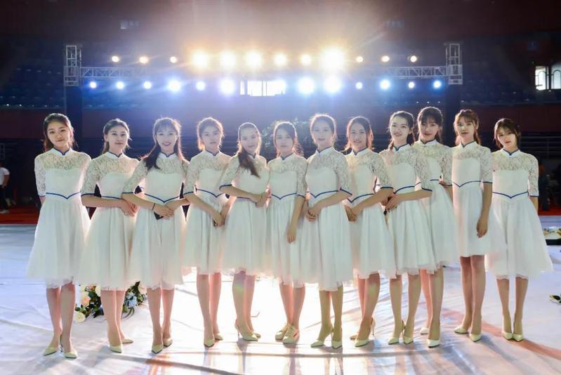图:朱恬逸(右三)为集体婚礼现场礼仪队一员