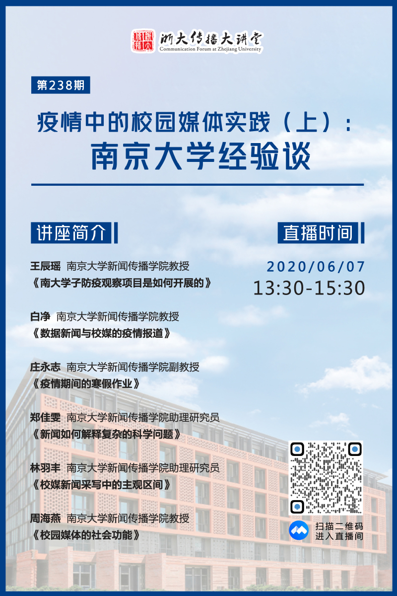 浙大传播大讲堂第238期:疫情中的校园媒体实践(上):南京大学经验谈