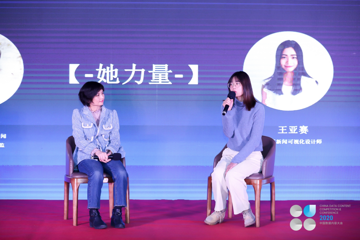 女性是数据内容行业不可忽视的重要力量。在大会最后一个议程——【她力量】对话中,来自澎湃新闻美数课的可视化设计师王亚赛与解放日报·上观新闻数据内容中心总监尤莼洁分享了女性在数据内容行业的成长与观察。