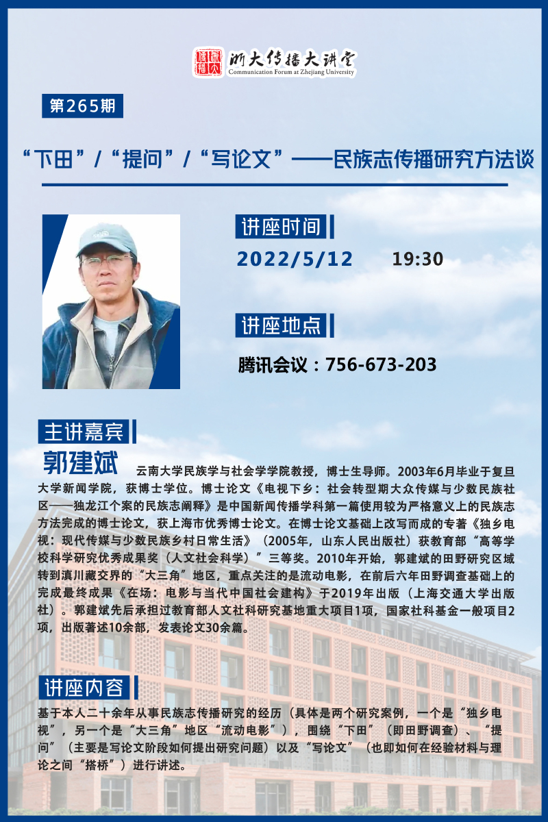 浙大传播大讲堂第265期:“下田”/“提问”/“写论文”——民族志传播研究方法谈