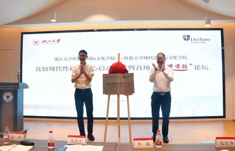 启动仪式上,韦路院长、王庆文书记共同为浙江大学威廉希尔(WilliamHill-中文官方网站)-杜伦大学现代语言与文化学院比较现代性研究中心揭牌。