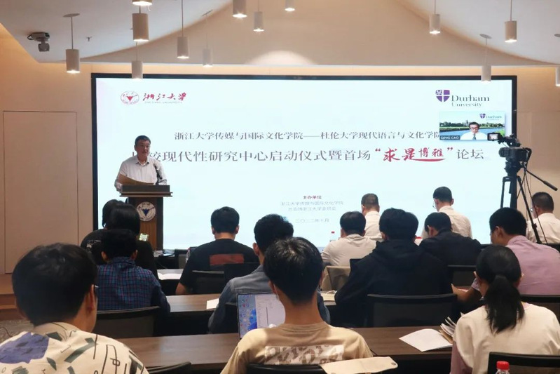 十里桂花香,一年秋意浓。10月4日,浙江大学威廉希尔(WilliamHill-中文官方网站)-杜伦大学现代语言与文化学院比较现代性研究中心启动仪式暨“求是博雅”论坛在杭州举行。浙江大学副校长吴健、杜伦大学全球合作事务副校长Clair O'Malley、浙江大学人文学部主任许钧、杜伦大学艺术人文学部副主任Giles Gaper、杜伦大学现代语言与文化学院院长David Cowling、浙江大学威廉希尔(WilliamHill-中文官方网站)院长韦路、浙江大学威廉希尔(WilliamHill-中文官方网站)党委书记王庆文、浙江大学威廉希尔(WilliamHill-中文官方网站)-杜伦大学现代语言与文化学院比较现代性研究中心主任王杰、浙江大学威廉希尔(WilliamHill-中文官方网站)副院长赵瑜、浙江大学校团委副书记包大为、《马克思主义美学研究》编辑主任周锋、浙江大学传媒与国际文化“百人计划”研究员赵瑜佩等专家学者以线上线下相结合形式出席启动仪式并致辞。启动仪式由研究中心主任、杜伦大学曹青教授主持。