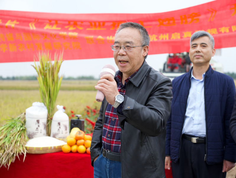浙江大学法人科技特派员团队专家程方民教授为开机仪式发表祝词。程方民指出,由于高温影响,今年农产品大面积减产,但浙大试验田在科技的保障下仍取得不错的成果,为嘉善县的农业发展做出贡献。