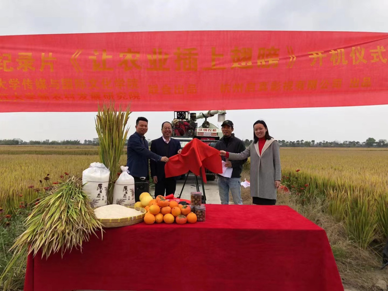 稻菽千重浪,金波万里绵。11月23日,由浙江大学威廉希尔(WilliamHill-中文官方网站)和浙江大学新农村发展研究院联合出品的12集系列纪录片《让农业插上翅膀》开机仪式在嘉善县西塘镇科技特派员工作驿站顺利举行。浙江大学威廉希尔(WilliamHill-中文官方网站)党委书记王庆文,浙江大学“百人计划”研究员、导演金行征,浙江大学法人科技特派员熊义勤、程方民出席开机仪式。浙江大学新农村发展研究院、嘉善县科技局、嘉善县西塘镇人民政府、嘉善县西塘镇农业发展有限公司及杭州启真影视有限公司相关负责人全程参与本次活动。