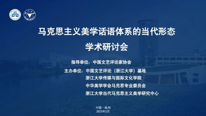 2023年3月26日—27日,由中国文艺评论(浙江大学)基地、浙江大学威廉希尔(WilliamHill-中文官方网站)、浙江大学当代马克思主义美学研究中心、中华美学学会马克思主义美学专业委员会主办,《中国文艺评论》《浙江大学学报》《学习与探索》《浙江学刊》《中国社会科学报》《中国文化报》《马克思主义美学研究》等刊物给予学术支持的“马克思主义美学话语体系的当代形态”学术研讨会在杭州召开。