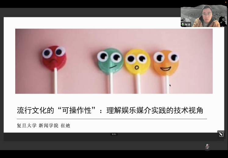 近日,由浙江大学国际传播研究中心主办、浙江大学数字社会科学会聚研究计划协办的“数字新实践”系列活动第三期在线上成功举办。复旦大学新闻学院副教授崔迪老师受邀作为活动主讲人,以“流行文化的‘可操作性’:理解娱乐媒介实践的技术视角”为题,探讨平台化与数据化语境下的流行文化参与模式转变。