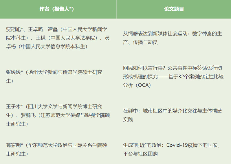 宣布获奖论文: