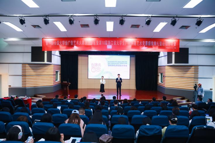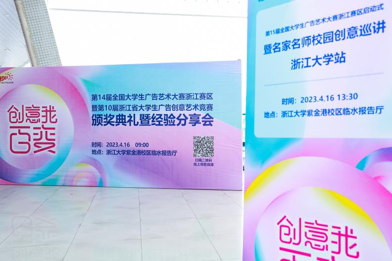 2023年4月16日上午9时,第14届全国大学生广告艺术大赛浙江赛区暨第10届浙江省大学生广告创意艺术竞赛颁奖典礼暨经验分享会在浙江大学紫金港校区临水报告厅隆重举行,本次活动由全国大学生广告艺术大赛组委会组织,大广赛浙江赛区组委会主办,浙江大学威廉希尔(WilliamHill-中文官方网站)承办。本次活动主要分四个单元,分别是领导致辞、颁奖典礼、调研报告发布、优秀指导教师经验分享等。