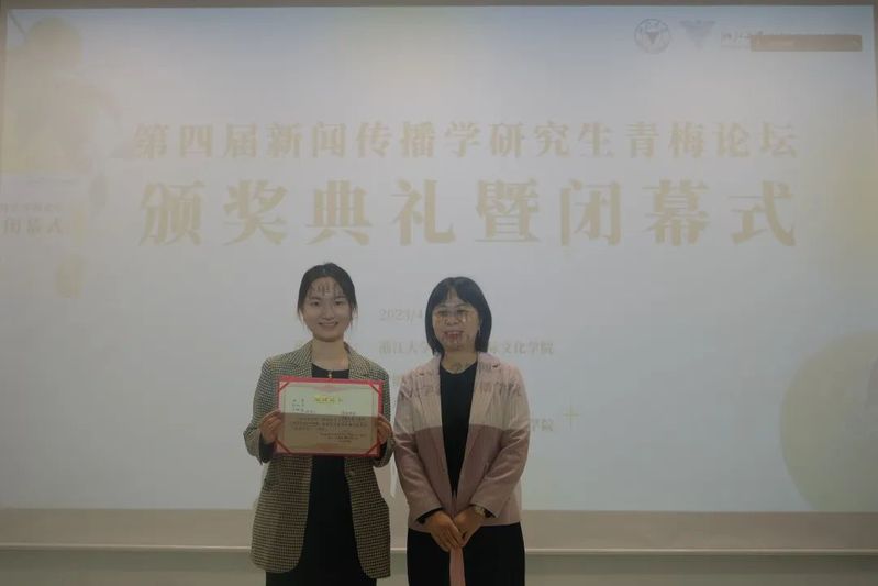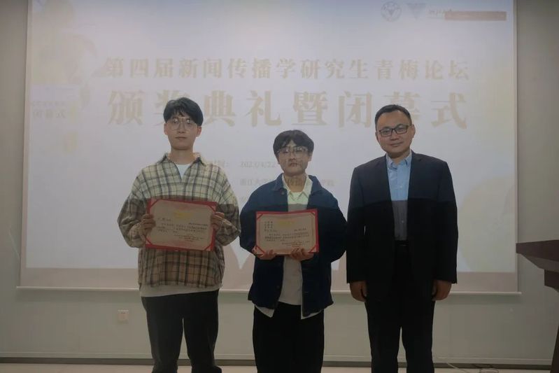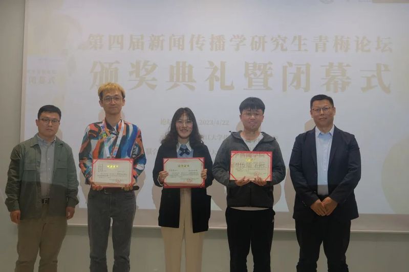 闭幕式上,韦路首先宣读了本届“青梅论坛”的获奖论文名单。第四届“青梅论坛”共产生6篇优秀论文,其中,一等奖论文由中国人民大学新闻学院硕士研究生张宇、陈科宇和余婉遥撰写的《情绪偏移:生育报道的情绪不一致性启动路径研究》获得;二等奖论文共两篇,包括中央民族大学新闻与传播学院本科生陈俊睿、母嘉怡、中央民族大学经济学院本科生董雯青、中央民族大学民族学与社会学学院本科生颜虹茹合作的《国家、资本与身体:生活方式新闻视角下健身报道的话语批判》和福建师范大学传播学院硕士研究生刘辉撰写的《平台社会的网络化地理景观——作为基础设施的数据中心网络研究》;上海交通大学媒体与传播学院博士研究生谢泽杭的《Does gossip affect people's healthy behavior:A moderated mediation model with evidence from Chinese villages》,浙江大学威廉希尔(WilliamHill-中文官方网站)本科生叶子、张雨薇、董婉婷、盛艺蓝、陆晶晶、王梓璇、谭玉清的《“奇观化”祝福:赛博种族主义视角下的非洲人祝福视频及其消费》和扬州大学新闻与传播学院硕士研究生张媛媛的《网民如何以言行事?公共事件中标签话语行动形成机理的探究》三篇论文获得三等奖。安徽大学新闻传播学院葛明驷副院长、南京大学新闻传播学院朱江丽副院长、中国人民大学新闻学院韩晓宁副院长、中山大学新闻传播学院钟智锦院长分别为获奖同学颁奖。