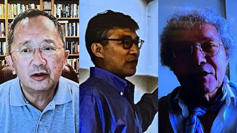 从左至右分别为潘忠党教授、杨国斌教授、Daniel Raichvarg教授