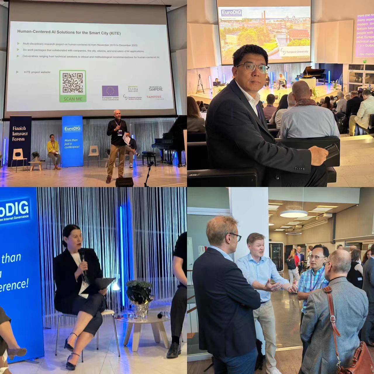6月19日至6月21日,来自IGF、ICANN、Microsoft 、Internal Affairs and Communications、ISOC Foundation、Scientific Cyber Security Association等的400多名国际机构负责人、专家、学者参加了在芬兰坦佩雷大学举行的欧洲网络治理对话(Euro DIG)。威廉希尔(WilliamHill-中文官方网站)求是特聘教授吴飞、方兴东和香港浸会大学教授钟布受邀参会。