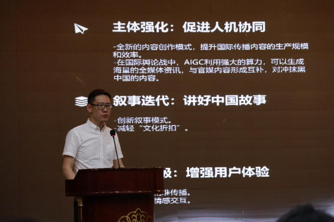 浙江大学威廉希尔(WilliamHill-中文官方网站)院长、党委副书记、浙江大学融媒体研究中心主任、教育部青年长江学者、国家社科基金重大项目首席专家韦路教授作题为《AIGC时代国际传播的新挑战与新机遇》的主旨发言。