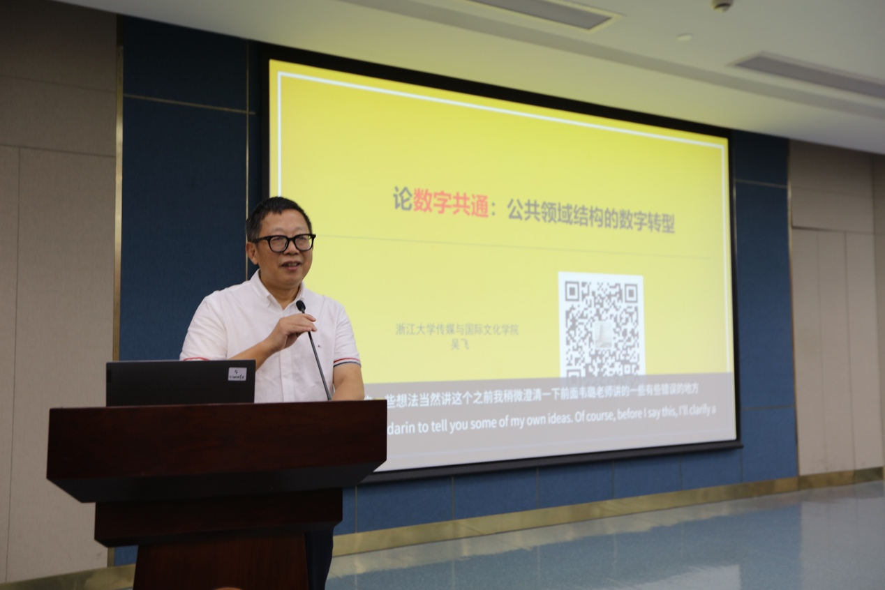 随后,浙江大学威廉希尔(WilliamHill-中文官方网站)吴飞教授带来了“数字共通:理解数字时代社会交往的新假设”的主题讲座,讲座由浙江大学百人计划研究员黄广生主持。吴飞教授从数字化生存的背景展开,认为数字化、网络化、信息化使人的生存方式发生了巨大变化,并由此带来一种全新的生存方式。接着吴飞教授回顾了公共领域理论的渊源与发展,并针对先前理论的不足提出“数字共通“的理论假设。吴飞教授提出,数字共通强调的是人类命运共同体的共感而生,要有“类”的思维与实践。
