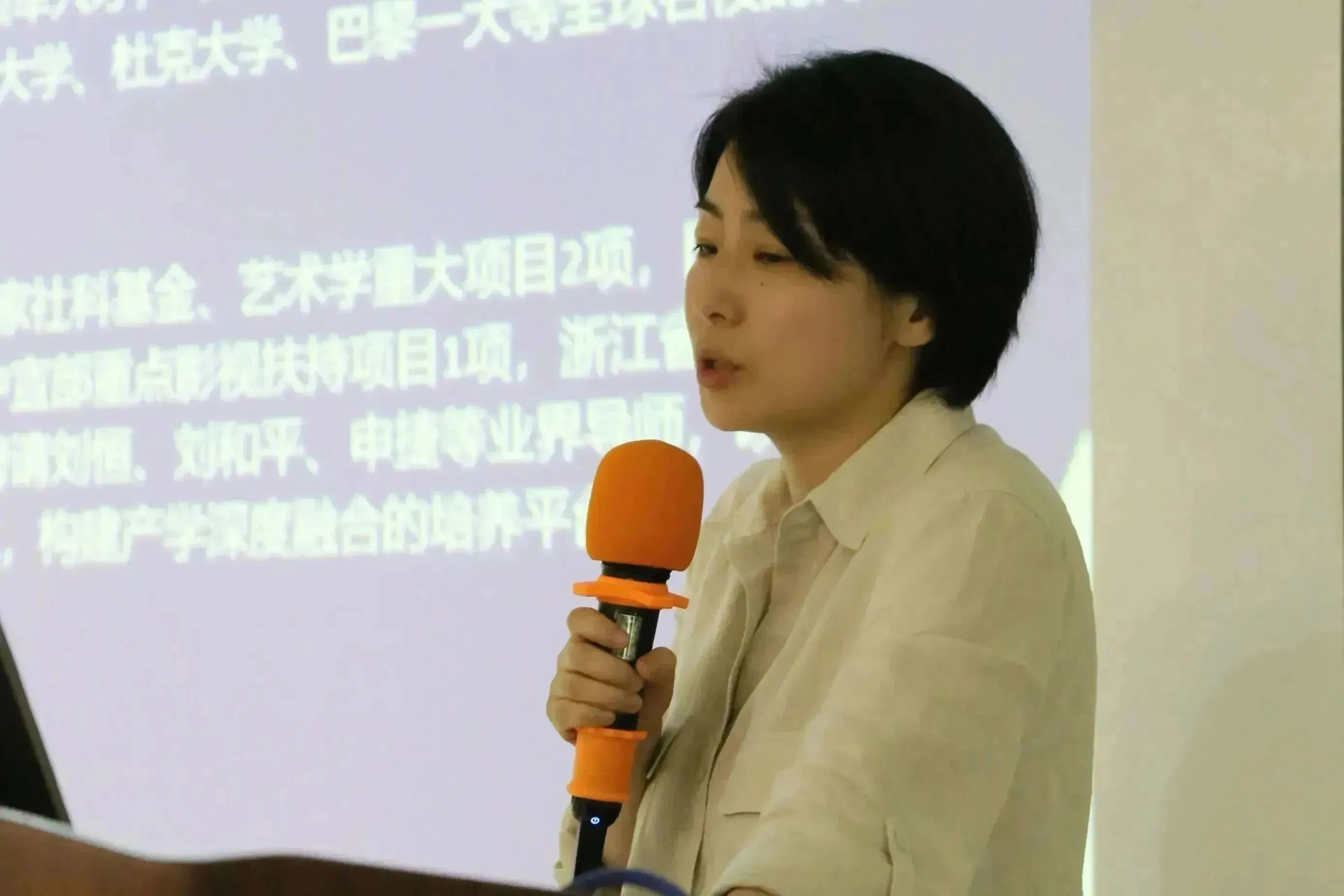 接着,副院长、广播电影电视研究所所长赵瑜教授结合学界、业界的动态向营员们介绍了艺术硕士(广播电视领域)专业的丰富性。她从人才培养的角度简述了“艺术美学”“大数据可视化与影视研究方法”等课程模块,强调了更适合该领域的产学研一体化培养生态。学科点在该领域主要具有三大优势:一是师资力量雄厚,综合品牌优势突出;二是产教学研融合,国际化特色鲜明;三是学科汇聚交融,培养层次齐备。汇集优势资源,学科点在“视听传播”“数字治理”“影视大数据”“纪录片创作”等方面都能给学生提供更专业、更多元的机会。最后,赵瑜教授提出了对学生的期待:“你可以不知道未来要干什么,但至少拥有好奇心和学习内驱力;你可以没有丰富的影视制作经验,但要肯吃苦、爱动手。”