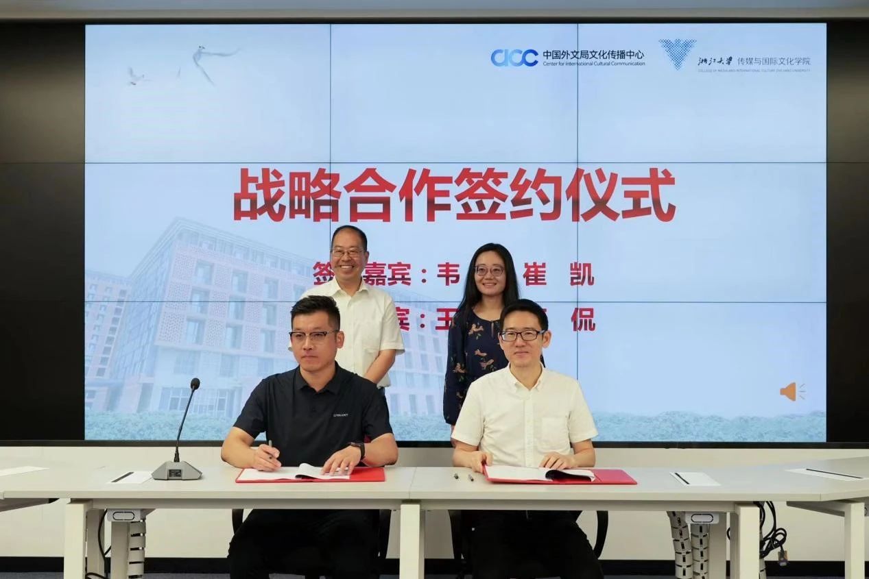 接下来,浙江大学威廉希尔(WilliamHill-中文官方网站)院长韦路与中国外文局文化传播中心数字文化推广部主任崔凯签署“中国外文局文化传播中心——浙江大学威廉希尔(WilliamHill-中文官方网站)战略合作框架协议书”,见证双方在基地建设、交流平台搭建、学术研究、媒体资源整合、人才培养等方面达成合作。
