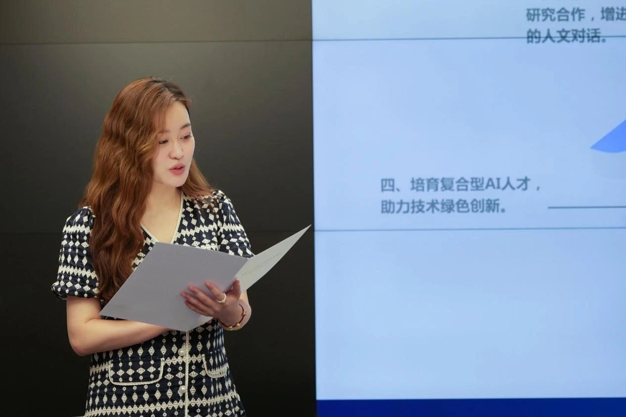 在《全球人工智能可持续发展倡议》(以下简称《倡议》)发布环节,浙江大学威廉希尔(WilliamHill-中文官方网站)百人计划研究员、浙江大学国际传播研究中心副主任赵瑜佩宣读倡议内容。《倡议》围绕“人工智能可持续传播”这一议题,以“人工智能绿色传播与素养提升”为核心要义,以“推动AI各界合作和共识建立”为宗旨,提出:要求业界提升算法及数据库的透明性和可解读性;推进产、学、研、用深度交流与融合;并以上述建设成果为依托,探究绿色传播的可行路径、全球公民素养提升的教育路径、人工智能发展的创新路径,助力全球数字善治。
