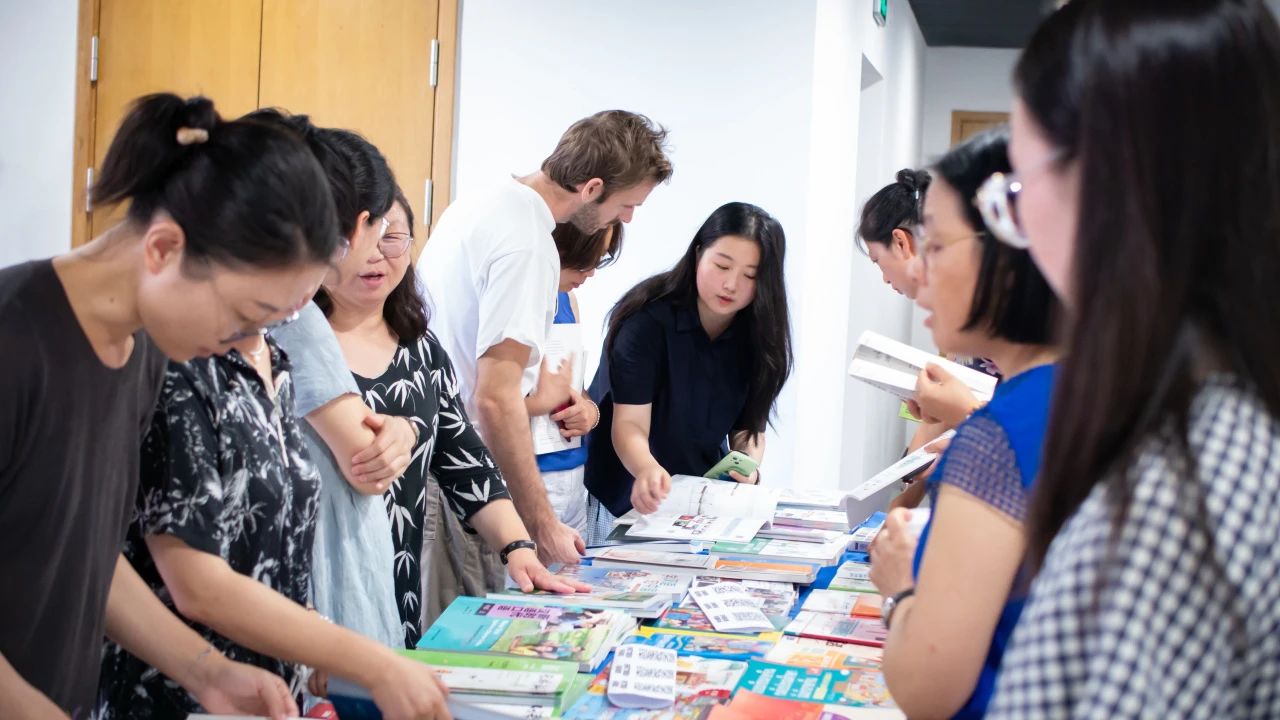 鞠慧社长所带领的外研社团队在浙江大学威廉希尔(WilliamHill-中文官方网站)布置了国际中文教育图书与教材展览会。从基础汉语到高阶教材,从实用口语到中国文化,特别是有面向欧洲的中国文化书籍。外研社谭紫格老师、袁季思老师为欧洲中文教师团介绍了本次书展的特色和亮点,为大家介绍特色图书与教材。欧洲教师们兴致勃勃,纷纷参观翻阅图书,并向编辑们咨询有关欧洲中文教学相关用书的信息。展会气氛融洽,为国际中文教育教材经验交流搭建起了一座坚实的桥梁。