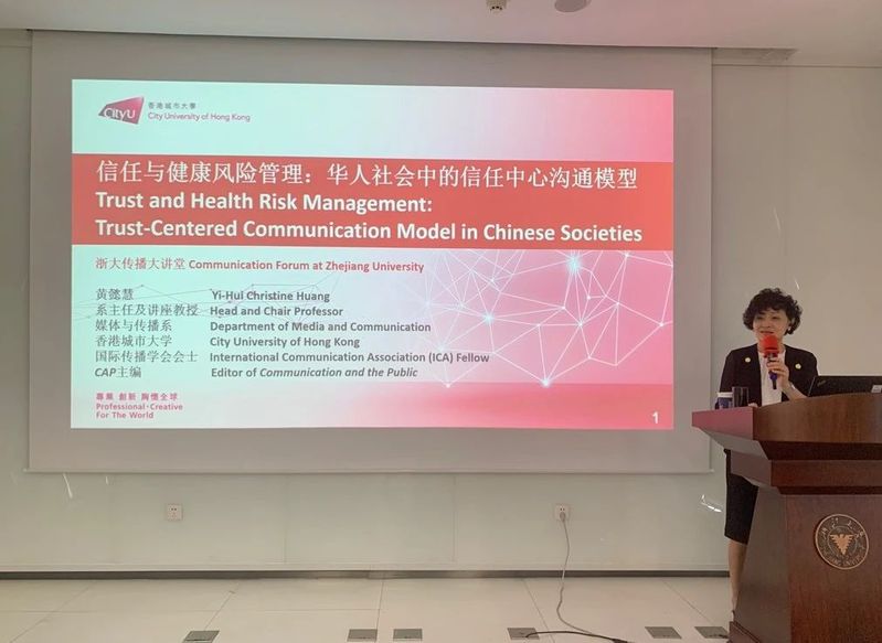 2023年10月26日上午,香港城市大学媒体与传播系系主任、讲座教授黄懿慧教授莅临浙江大学威廉希尔(WilliamHill-中文官方网站),以 “信任与健康风险管理:华人社会中的信任中心沟通模型”为题,介绍了新冠疫情背景下关于信任的系列经验研究以及以此构建的信任中心沟通模型。讲座由威廉希尔(WilliamHill-中文官方网站)“百人计划”研究员黄清老师主持,数名师生与会聆听交流。