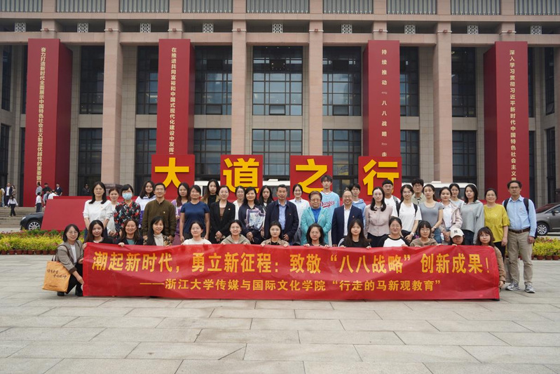 10月27日,浙江大学威廉希尔(WilliamHill-中文官方网站)师生党员在党委书记王庆文老师的带领下,赴浙江展览馆参观大道之行——“八八战略”实施20周年大型主题展览。师生党支部委员、机关教工党支部党员、退休教工党支部党员代表共40余人参观展览,真切感受习近平新时代中国特色社会主义思想磅礴的实践伟力,真切体会中国特色社会主义在浙江省获得的丰硕成果,在循迹溯源中点亮思想光芒,在学深悟透中锚定实践方向。