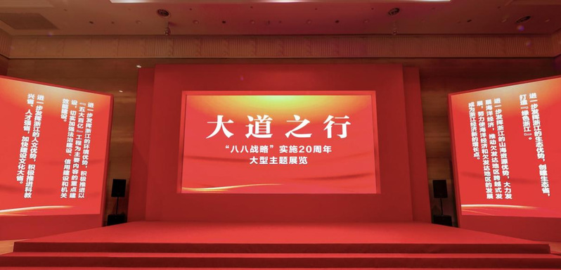 本次主题展览综合展区分为伟大擘画、精彩蝶变、勇立潮头三部分,聚焦习近平总书记走过的足迹、擘画的印迹、牵挂的心迹,讲好总书记的故事,重点诠释“八八战略”的提出、实施及其重大意义,展现习近平新时代中国特色社会主义思想在浙江的实践历程,立体呈现在“八八战略”指引下,20年来浙江全领域各方面发生的精彩蝶变,彰显“八八战略”历久弥新的真理力量和实践伟力。