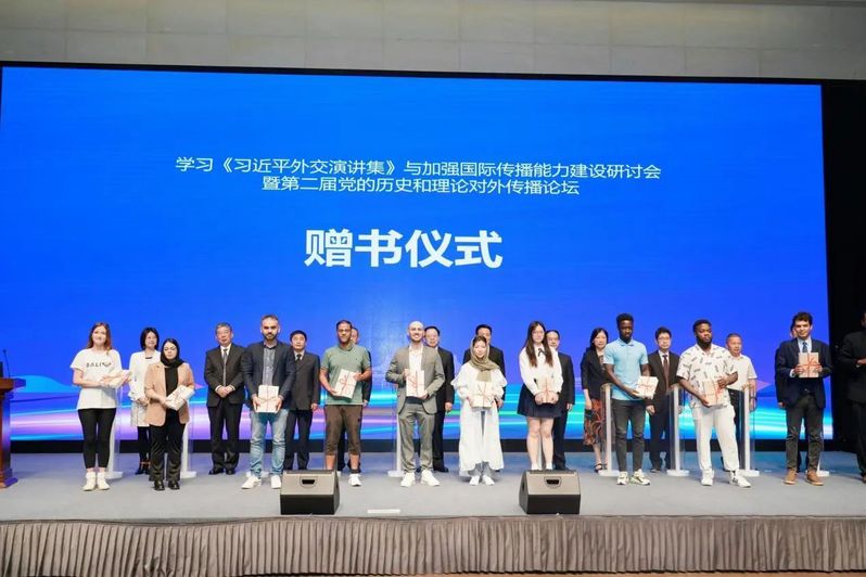 随后,在开幕式上举行了赠书和揭牌仪式。与会嘉宾和专家学者向浙江大学留学生代表赠送《习近平外交演讲集》第一卷、第二卷英文版,并共同为“党的历史和理论对外传播研究基地”揭牌。