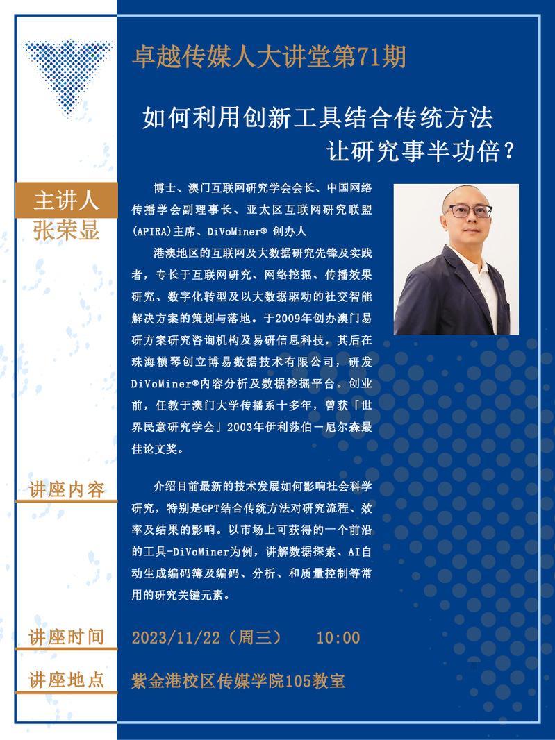 卓越传媒人大讲堂第71期|如何利用创新工具结合传统方法让研究事半功倍?