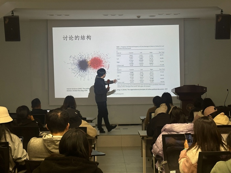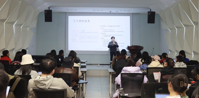讲座的最后是同学们的提问交流环节。学生们就使用计算方法判断因果关系的问题向梁老师提问,他简要介绍了计算传播方法的有效性,并为同学们推荐了相关书籍和学习资料。整个讲座在积极互动中圆满结束。