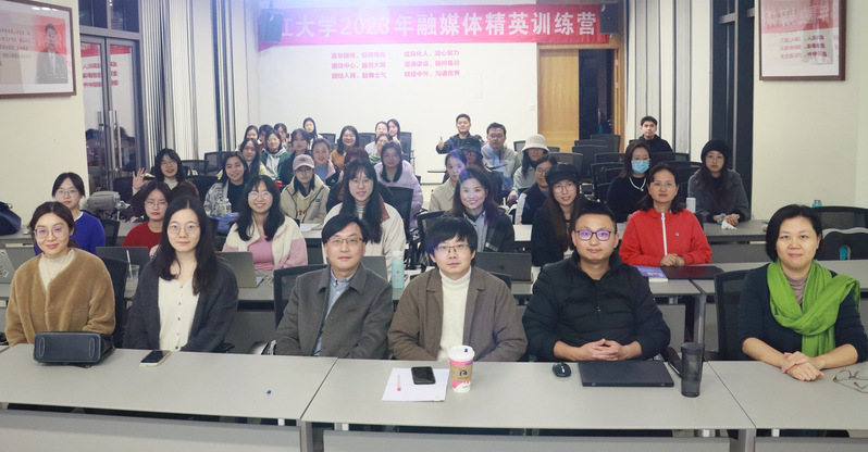 图5:梁海副教授(一排左三)与传媒学院师生合影