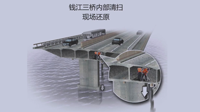 黄昕老师以《钱江三桥内部清扫现场还原图》的新闻为例,向同学们生动展现了图像在信息传播上的强大效果:一张简单的图像就能够清楚地解释桥梁内部结构和大桥混凝土掉落“落灰”的原因,消除市民们对桥梁安全的担忧。