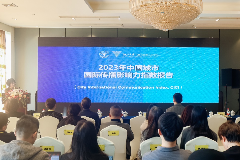 图为吴红雨教授代发布《中国城市国际传播影响力指数(2023)》